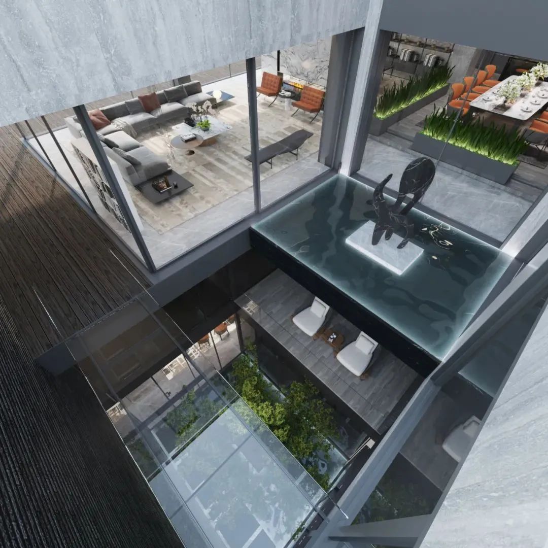 别墅上下共有5個套房,影音室、健身房、瑜伽室、書房等等一應俱全,開放式露台将室外美景引入。對(duì)内,主卧也有獨(dú)立的私人陽台。