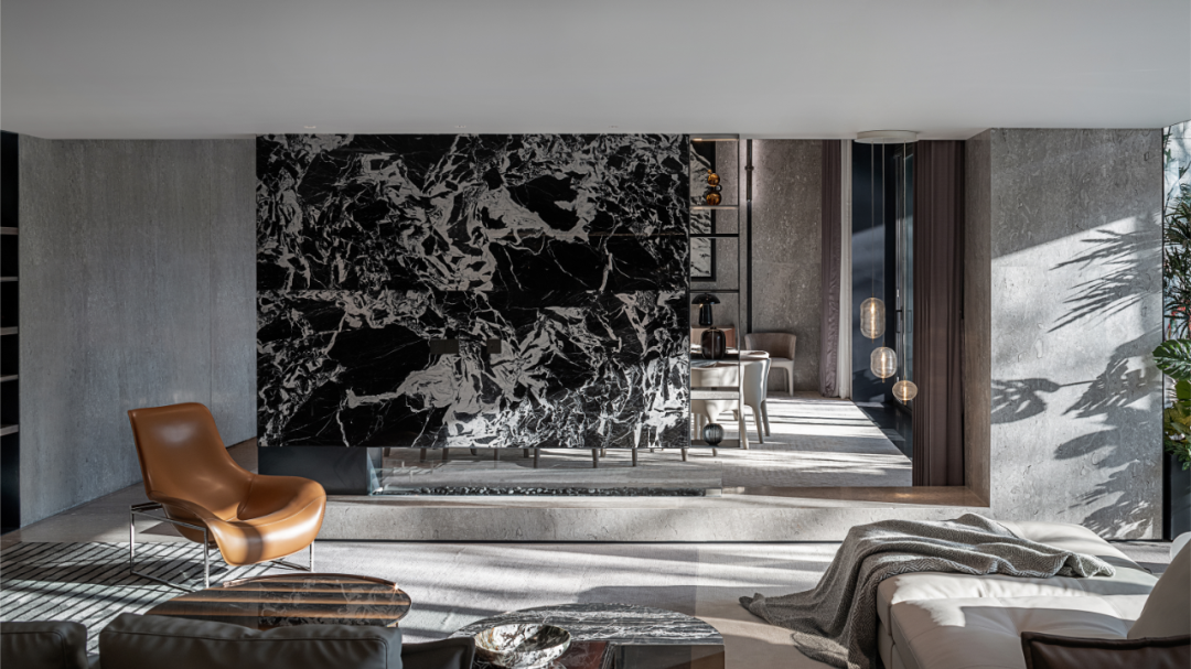 高級(jí)灰與暖木色交織在陽光下,落地窗将樹影婆娑的景象牽入室内,感受一天的時間流逝。茂盛的綠植将室内裝點(diǎn),與室外相得益彰。